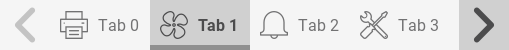 The widget should contain a list of checkable buttons (one or more) where one and only one button can be checked at a time (in the example image only the Tab 1 button is checked). When the size of the widget is not sufficient to show all checkable buttons, two other buttons (the two arrows in the image) should appear in order to control the viewport position. In the example image, only the right button is enabled; we will refer to these two buttons as viewport buttons. The embedded gestures to scroll left/right the tabs bar are supported.
