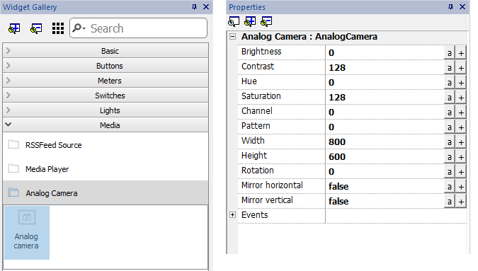 Use this widget to show images from an Analog Camera (a plug-in expansion module for adding the input video functionality is required)